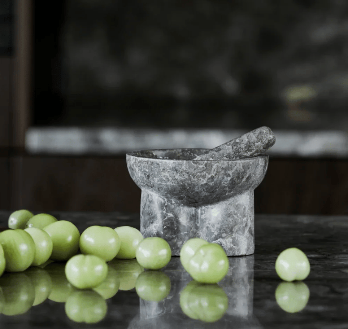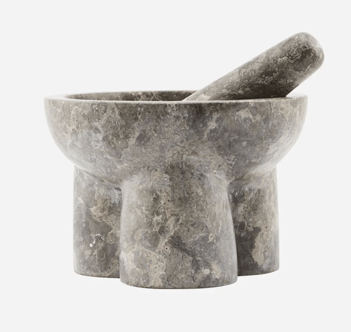 Let this marble mortar from House Doctor decorate the kitchen table and use it to grind your own spice mixes. The mortar is named Kulti and comes with a matching pestle in the same colour and style. The sculptural shape creates a raw look that looks nice in combination with the grey and brown shades. The robust and decorative material provides a beautiful and functional design that will be a stylish addition to the kitchen.